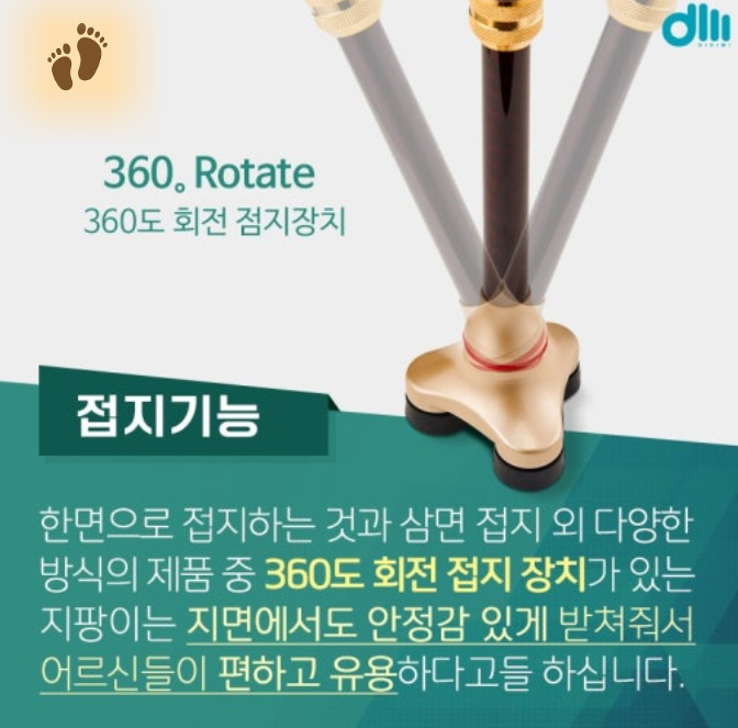 반면, 외출이 잦은 분이라면 접이식 1발 지팡이도 실용적입니다.